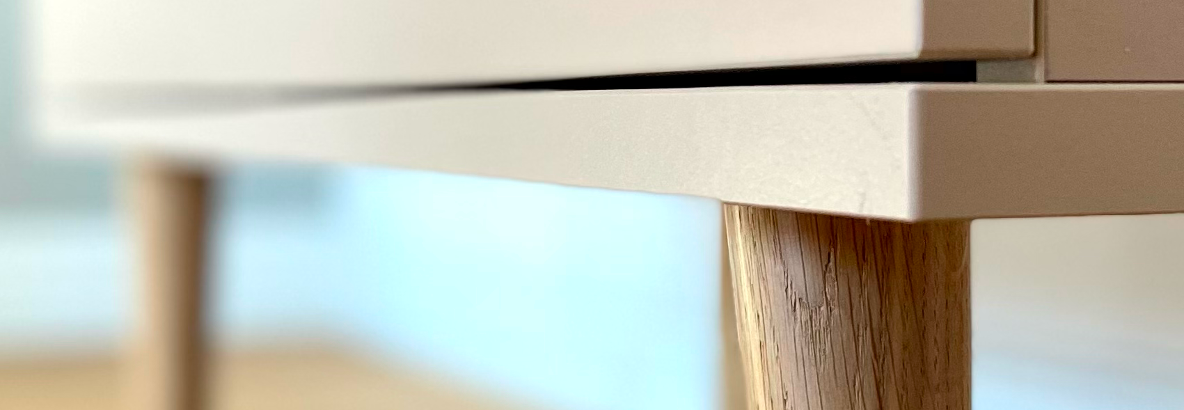 Meble naszej produkcji są od początku projektowane przez nas. Wybieramy komponenty bardzo dobrej jakości, które sprawiają, że po złożeniu mebel jest stabilny i masywny. Skupiamy się na tym by szafka była ustawna oraz pasująca do pozostałych mebli. Mocowanie nóżek czy uchwytów jest sprawdzone i zapewnia odporność na zużycie czy wyrobienie otworów w płycie.