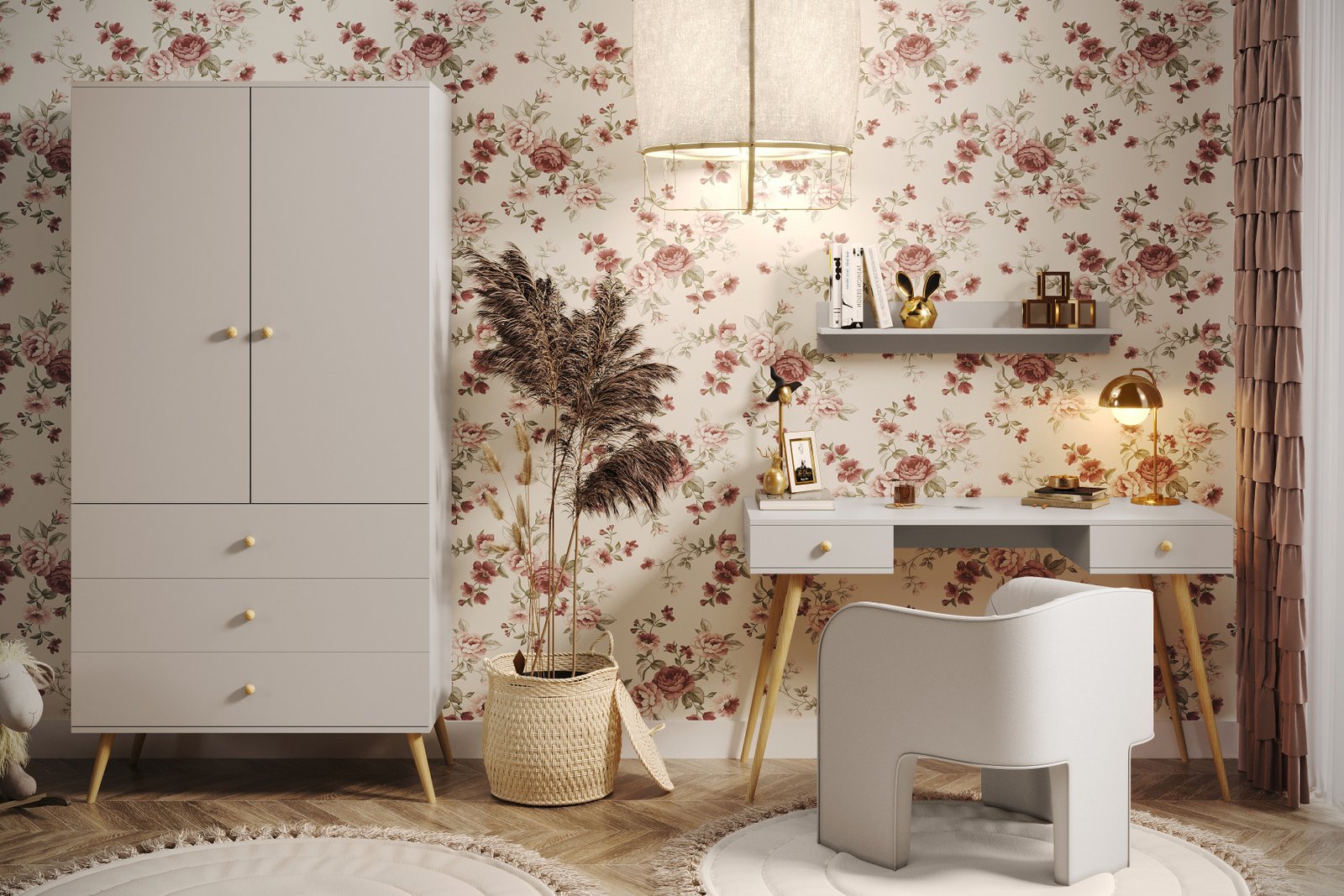 Opinie o Szafa głęboka BOHO z szufladami i drążkiem na drewnianych nogach 202/100/52 - Róż naturalny